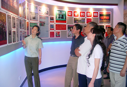 圖為:參加活動(dòng)人員參觀史料陳列室,聽取“二妹子”民兵班第14任班長(zhǎng)陳金萍的現(xiàn)場(chǎng)講解。