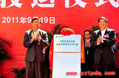 天津市委副書記、濱海新區(qū)區(qū)委書記何立峰和國家電網(wǎng)公司副總經(jīng)理、黨組成員欒軍共同為中新天津生態(tài)城智能電網(wǎng)綜合示范工程投運揭牌。中新天津生態(tài)城智能電網(wǎng)綜合示范工程是天津智能電網(wǎng)建設發(fā)展的標志性工程。此工程遵循“可實行、可復制、可推廣”的規(guī)劃思路,努力構(gòu)建安全可靠、優(yōu)質(zhì)清潔、高效互動的能源供應體系和服務體系。該工程投運后,不僅風電、光伏發(fā)電等可再生能源利用率可達到20%以上,而且電網(wǎng)能實現(xiàn)和有線電視、IP電話、互聯(lián)網(wǎng)的相互融合,其遙控、遙測、信息反饋的智能化能力可做到從居民生活到公共設施,再到工業(yè)生產(chǎn)的全涵蓋。