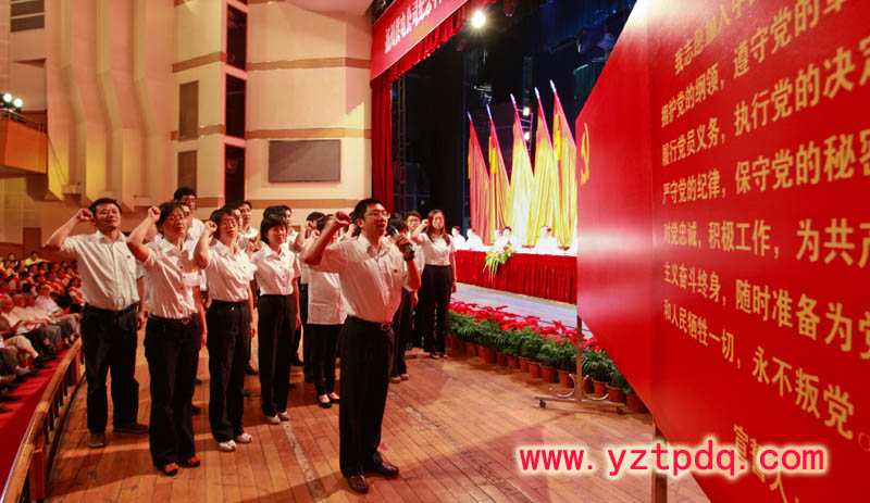 2012年6月28日上午,“我志愿加入中國共產(chǎn)黨,擁護黨的綱領……”揚州供電公司管理第三黨支部的黨員在黨支部書記的帶領下,高舉右拳,佩戴黨徽,莊嚴宣誓。公司工會主席以普通黨員的身份參加了重溫誓詞活動。
