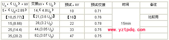1、綜合國(guó)外和國(guó)內(nèi)采用的標(biāo)準(zhǔn),在Un=60kV以下的中壓電纜(3~35kV)其交接試驗(yàn)電壓均為2U0,預(yù)試電壓用0.8×2U0=1.6U0。深入分析,可見(jiàn)交接和預(yù)試電壓的具體值是偏低的。它適宜于發(fā)現(xiàn)(擊穿)有絕緣缺陷和存在問(wèn)題的電纜絕緣。例如:10kV電纜的交接試驗(yàn)電壓2U0=17.4kV,預(yù)試僅為14kV,比最高工作線(xiàn)電壓Um=11.5kV高出不多。這樣的電壓是不能用來(lái)檢測(cè)正常絕緣的絕緣水平的。因?yàn)檎=^緣的絕緣水平相當(dāng)高,新電纜的出廠(chǎng)交流耐壓也是很高的。