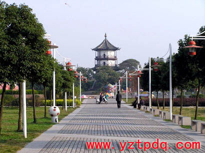 廣場設計遵循“以人為本、以水為源、以綠為美”的原則,注重高郵水鄉(xiāng)的地域特色。在整體布局上采用“一軸二面三點”,即以“景觀主軸線,蝶池小面、蝶園主廣場,入口商業(yè)休閑廣場、親水廣場、宋城墻魁星閣古跡”為主體,水上平臺和引橋流水融為一體,使人感受到水鄉(xiāng)特有的水性的滋潤。廣場綠化設計充分體現(xiàn)“花香蝶自來”的意境,種植花草樹木近40個品種,其中有櫸樹、香樟、桂花、梅花、天堂草等,錯落有致。駐足看,廣場綠草如茵,彩蝶飛舞,彩色噴泉千姿百態(tài);徐行聽,流水淙淙,舞曲翩翩,綠樹叢中鳥啼鶯囀,讓人心曠神怡。