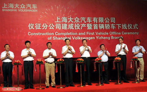 揚(yáng)州網(wǎng)綜合報(bào)道 今天上午十一點(diǎn),上海大眾汽車有限公司儀征分公司舉行建成投產(chǎn)暨首輛轎車下線儀式。江蘇省委書記羅志軍,省長李學(xué)勇、省委常委、秘書長樊金龍,副省長張衛(wèi)國、揚(yáng)州市委書記謝正義、市長朱民陽等領(lǐng)導(dǎo)出席儀式并剪彩,共同為首輛轎車下線進(jìn)行啟動(dòng)。