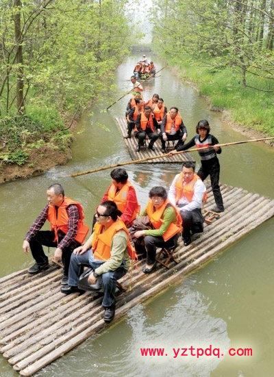 四只木筏,載著采風(fēng)團(tuán)一行在蜿蜒的河道中緩緩穿行,導(dǎo)游的介紹,使大家的思緒回到那個(gè)特定的年代:“這片樹林也稱‘知青林’,40多年了,一行行、一列列水杉枝繁葉茂,30000多棵水杉,講述著歷史、美化著環(huán)境。”