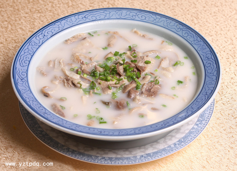 揚(yáng)州高郵十大名菜之一“三陽開泰”,即高郵羊肉湯,為高郵臨澤鎮(zhèn)名菜。臨澤鎮(zhèn)地區(qū)湖蕩多、草灘廣、水草肥,故這里的羊肉湯無腥味,熱能高,暖性強(qiáng).含脂少,膽固醇低,味美可口。寒冬臘月,喝高郵羊肉湯,如同三月的艷陽在心中暖洋洋的,通體舒暢,故名三陽開泰。