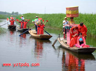 4、哭嫁,新娘上船時要哭哭啼啼,親娘同時也要哭哭啼啼,意味相互難舍。也說是哭得越響,婆家越有財,將大吉大利。