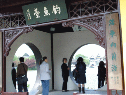 在中國(guó),以“釣魚臺(tái)”命名的景點(diǎn)非常多,但揚(yáng)州的釣魚卻是眾多釣臺(tái)中體量最小,也是極富特色的一座。它是中國(guó)名亭建筑的典范,是中國(guó)園林“框景”藝術(shù)的代表作品。站在釣魚臺(tái)斜角 60 度,您可以在北邊的圓洞中看到五亭橋橫臥波光:而南邊的橢圓形洞中則正好可以看到巍巍白塔。這一景象一彩一素,一橫一臥,真是堪稱絕妙。這里也是外地游客到揚(yáng)州一定要留影的地方。那洞中借景的畫面正好對(duì)應(yīng)了“三星拱照”的名稱。