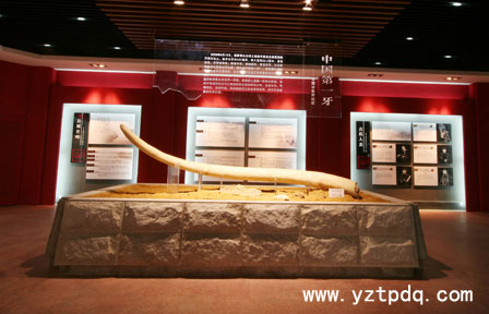 走進寶應博物館,一進一樓大廳,就能看見一根象牙,長420厘米,最大直徑22.2厘米,淺白色,月牙狀彎曲,表面平滑,為國內(nèi)出土同類化石之最,堪稱“中華第一牙”。這根象牙是2003年9月在寶應夏集鎮(zhèn)境內(nèi)出土的,是一個古菱齒象牙化石,古菱齒象比猛犸象要大20萬歲,體型比猛犸象還要大,是當時地球上顯赫一時的“大象家族”。
