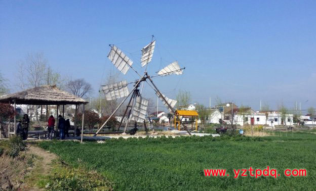 四、沿小道向北跨過小橋便是大風車樂園,大風車、水車、磨子、甸,再現(xiàn)原歷史大型生產(chǎn)、生活用具的記憶。