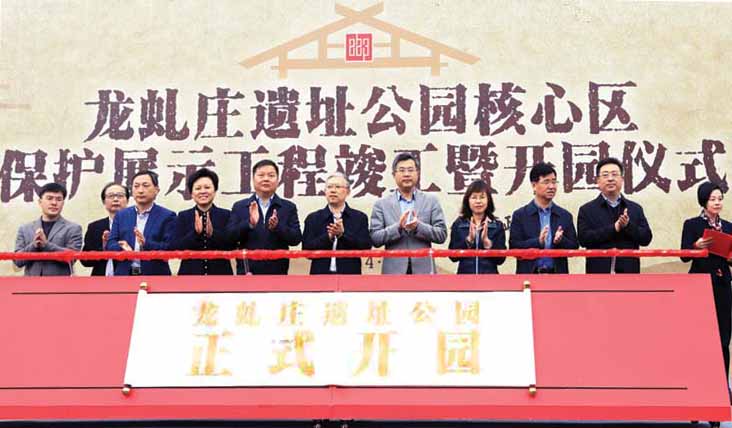 遲日江山麗, 春風(fēng)花草香。2019年4月28日上午,龍虬莊遺址公園核心區(qū)保護(hù)展示工程竣工暨開園儀式在龍虬莊遺址公園舉行。省文化和旅游廳副廳長、省文物局局長吳曉林,省文化和旅游廳文物綜合處處長錢寧,揚(yáng)州市文化廣電和旅游局副局長徐國兵,南京博物院考古研究所副所長周潤墾,以及高郵市領(lǐng)導(dǎo)共同為龍虬莊遺址公園開園推桿揭幕。