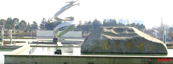 下沉式廣場北首主入口處有一塊天然臥石,上刻有中國書法家協(xié)會主席沈鵬題寫的“龍川廣場”四字,水由石下涌出,沿“龍川”逐層跌落,注入廣場中心的“龍池”。
