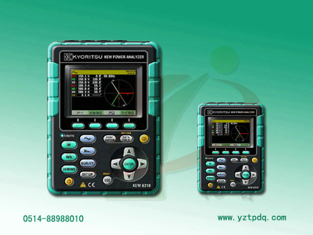 6310 電能質(zhì)量分析儀設計符合國際安全規(guī)格IEC61010-1 CAT.III 600V。諧波測試可達63次。采用大型彩色LCD顯示屏。具有5種接線系統(tǒng):單相2線(4回路)、單相3線、三相3線(2回路)、三相4線、單相3線+三相3線(SCOTT WIRING)。各種功率測量方法包括功率質(zhì)量分析。